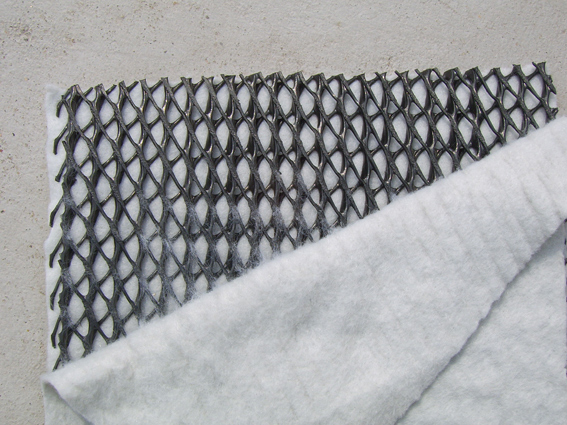 三維復合排水網(wǎng)由特有的三維土工網(wǎng)雙面粘結土工布制成。組合了土工布(反濾作用)和土工網(wǎng)(排水和保護作用),提供完整的“反濾--排水--保護”功效。